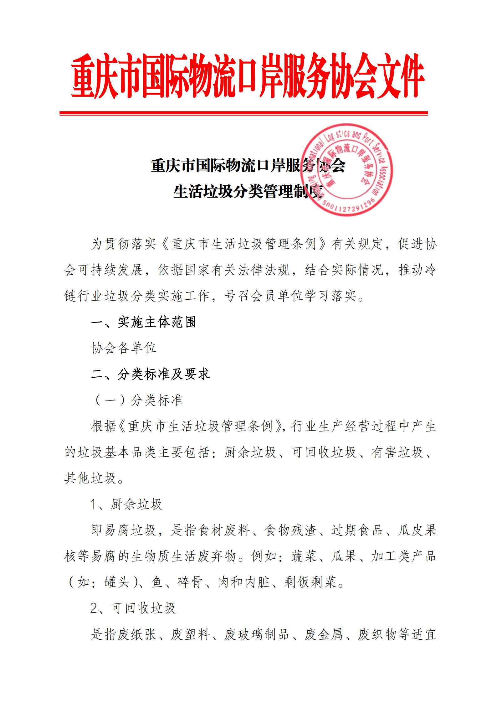 重庆市国际物流口岸服务协会生活垃圾分类管理制度