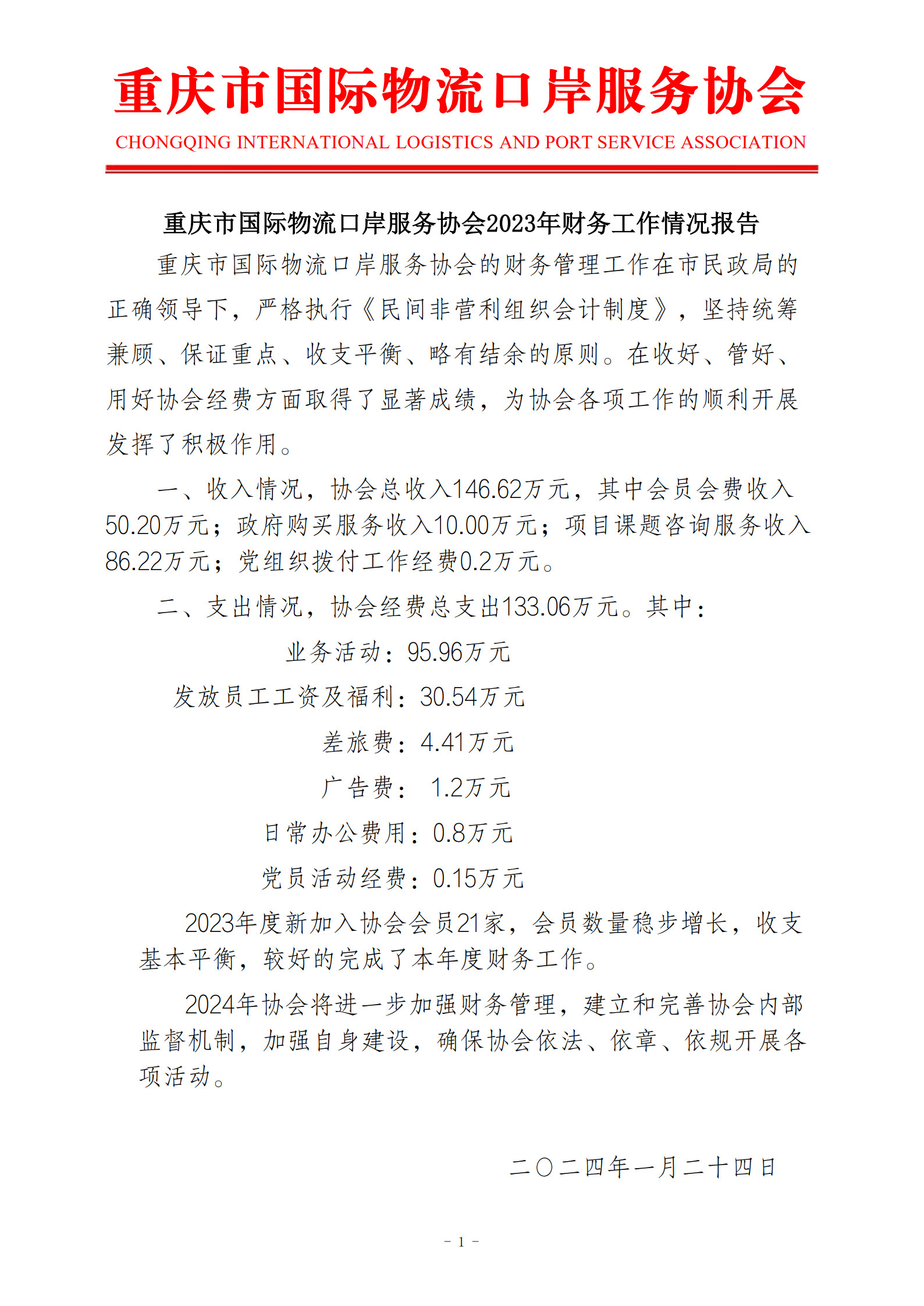 重庆市国际物流口岸服务协会2023年财务工作情况报告
